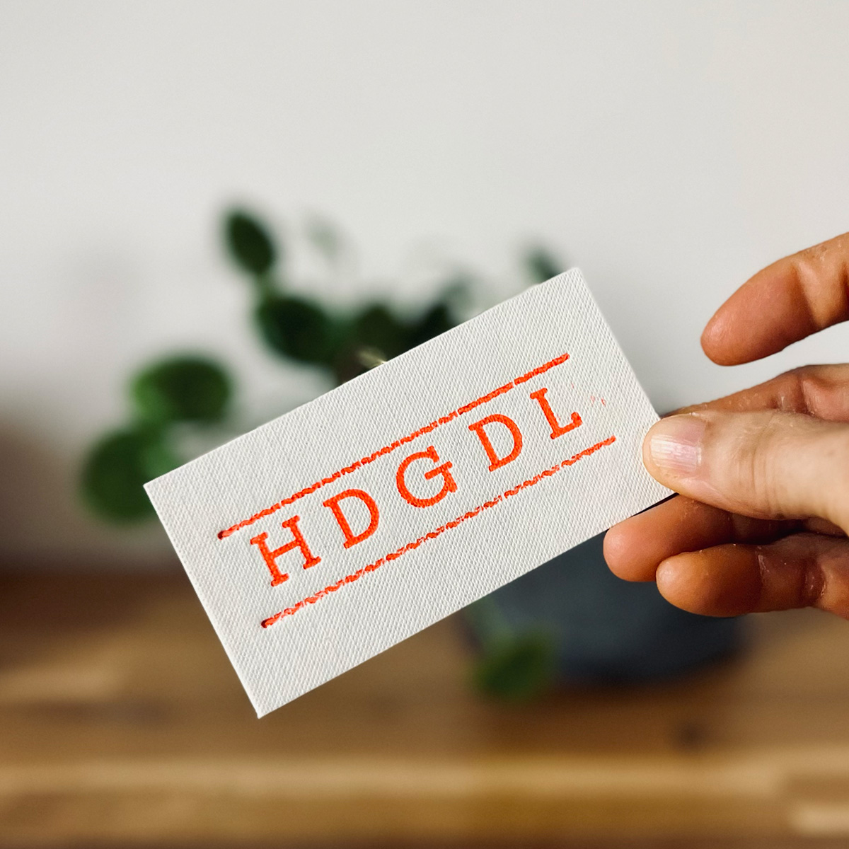 Hier wurden Bleilettern und Zierlettern auf einen recycelten Buchdeckel mit Buchdruckfarbe von Hand gedruckt