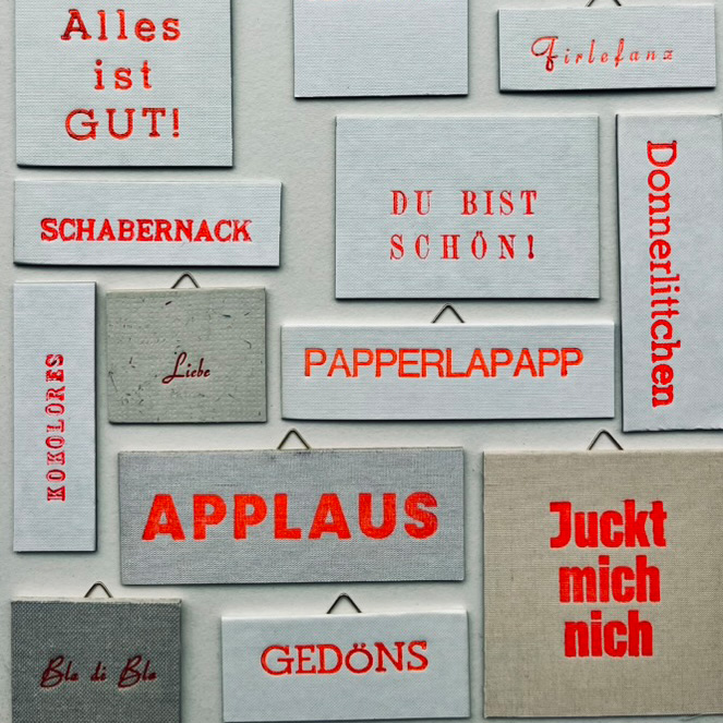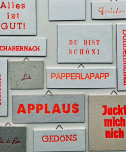 Buchdruckfarbe, Buchdeckel, Bleilettern, Bildaufhängung