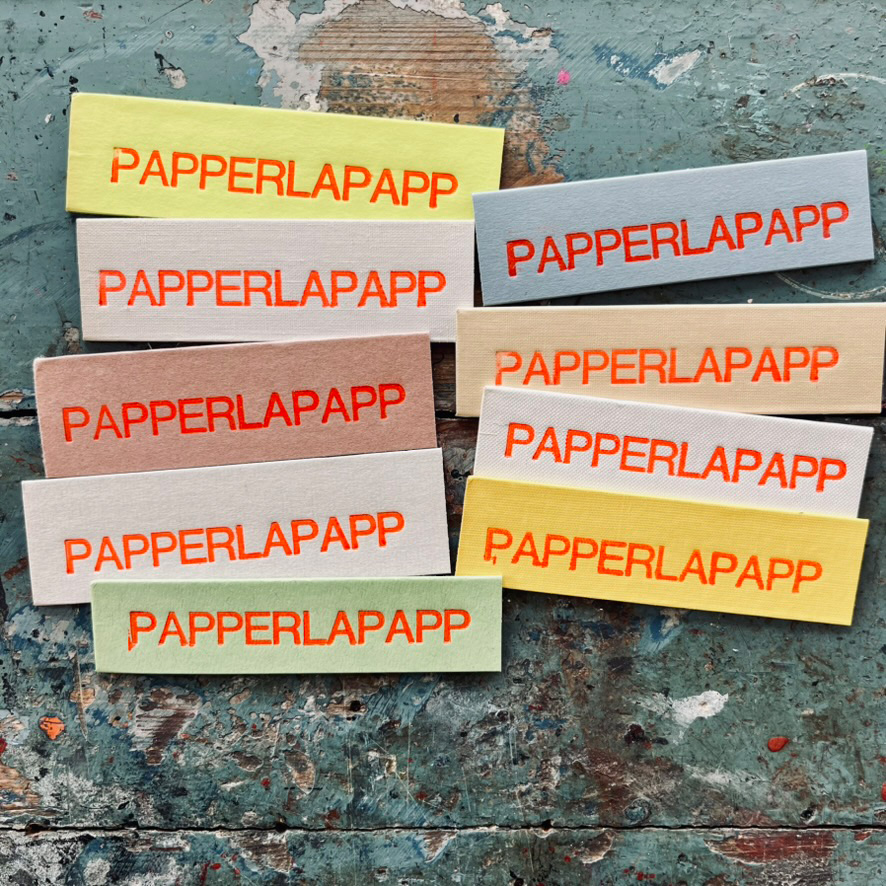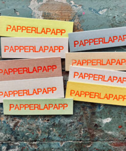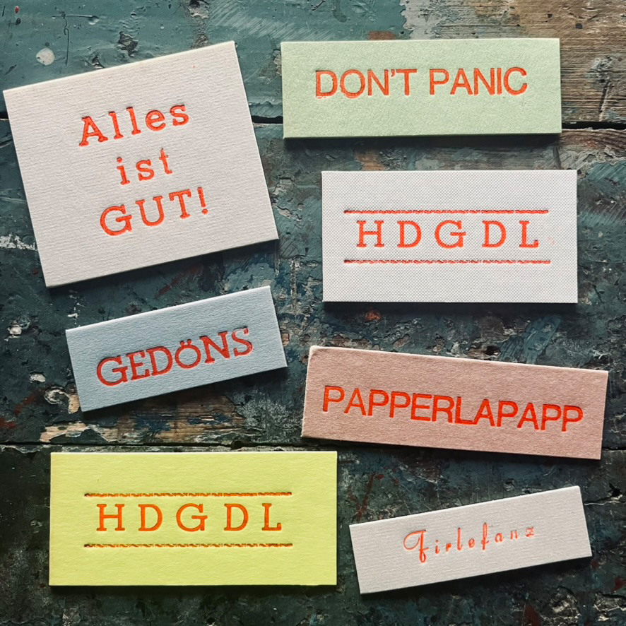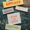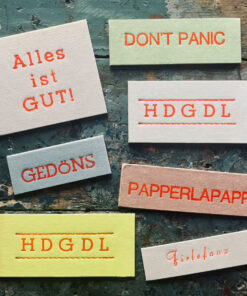 Hier wurden Bleilettern auf einen recycelten Buchdeckel mit Buchdruckfarbe von Hand gedruckt