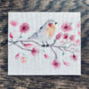 hier wurde ein handgeschnitzter Linolschnitt auf einen recycelten Buchdeckel mit Buchdruckfarbe von Hand gedruckt.