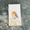 hier wurde ein handgeschnitzter Linolschnitt auf einen recycelten Buchdeckel mit Linolfarbe von Hand gedruckt.