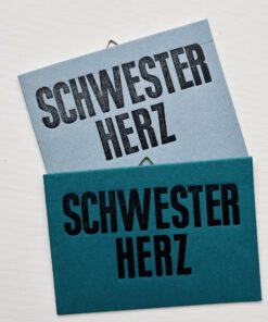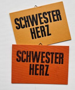 Hier wurden Plakatlettern auf einen recycelten Buchdeckel mit Buchdruckfarbe von Hand gedruckt.