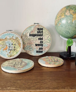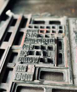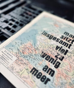 hier wurden Bleilettern auf einen Atlantenausschnitt mit Buchdruckfarbe von Hand gedruckt.