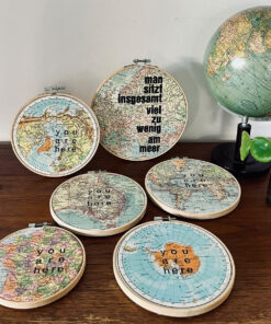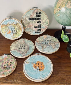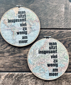 Linolfarbe, Linolschnitt, Büttenpapier, Stickrahmen