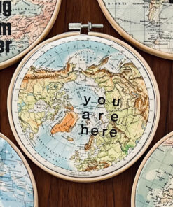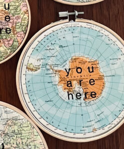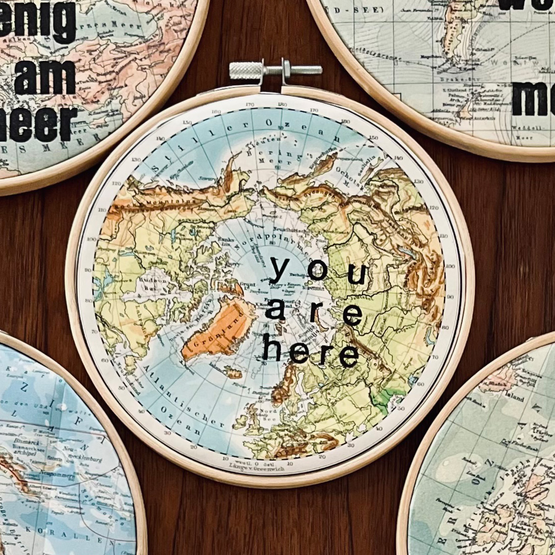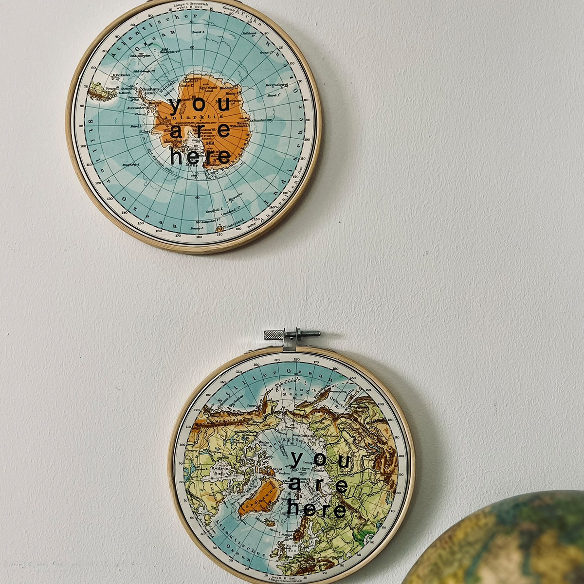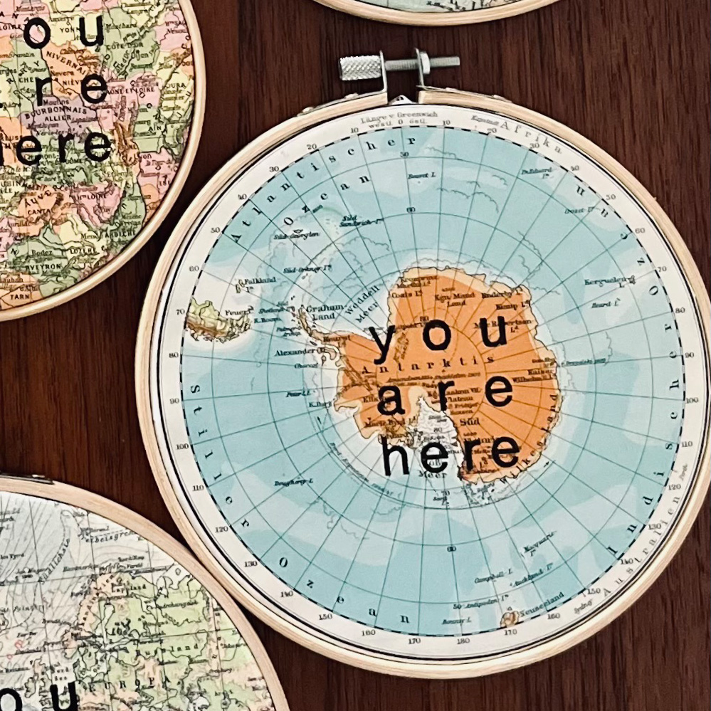 hier wurden Bleilettern auf ein Atlantenblatt Nordpol oder Südpol mit Buchdruckfarbe von Hand gedruckt.
