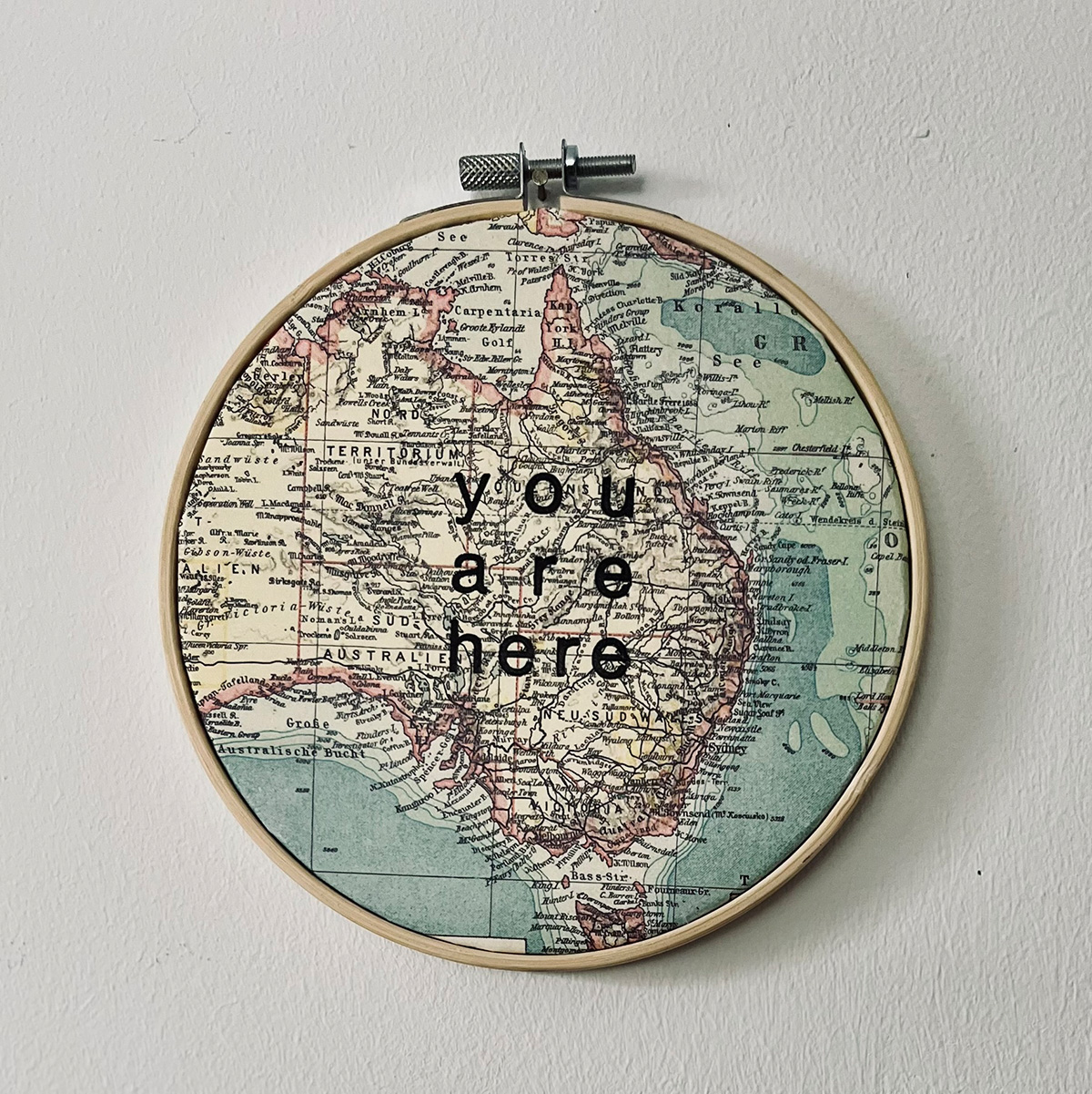 Das Bild wurde in einen Stickrahmen gespannt und hat dadurch einen schönen Rahmen bekommen.
