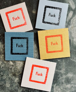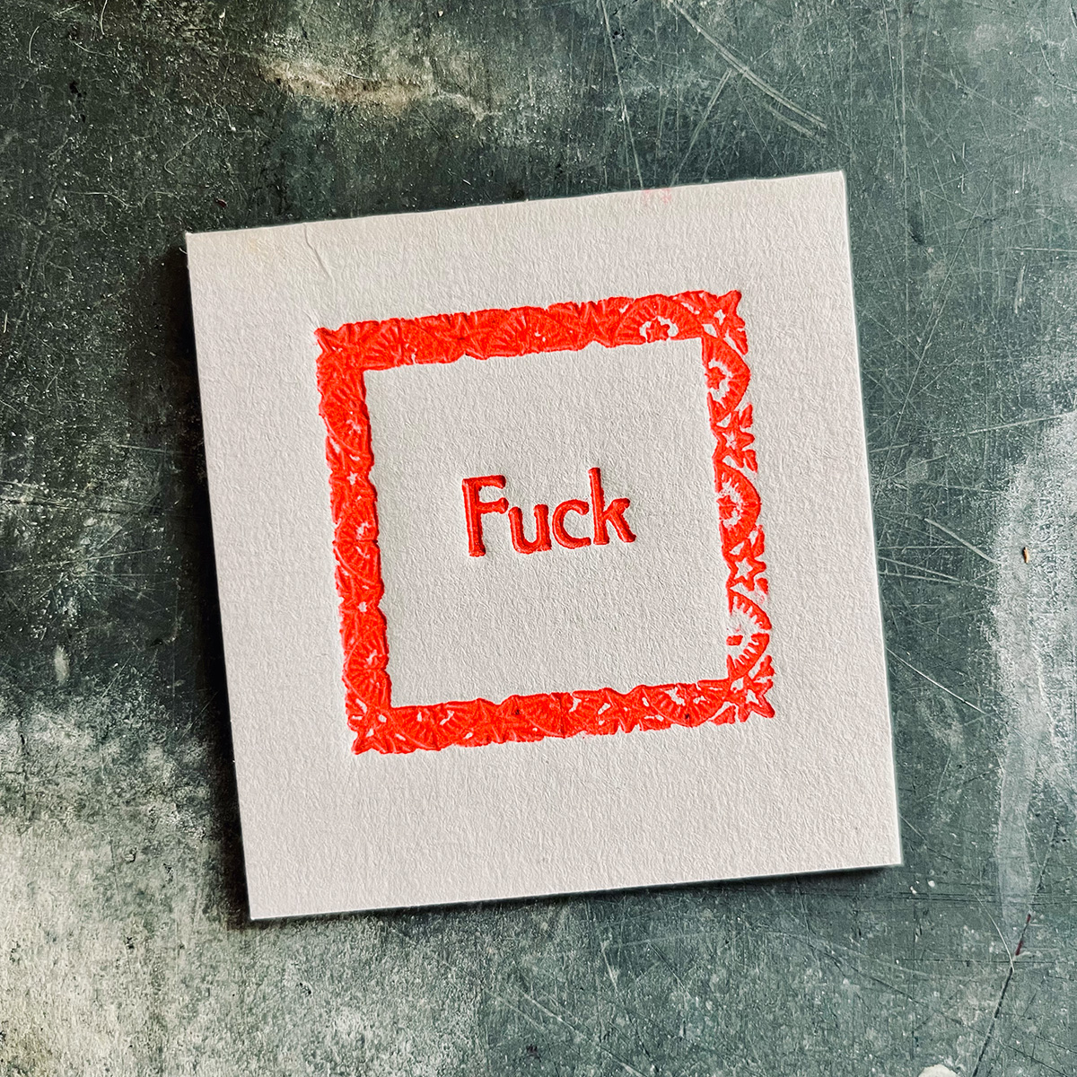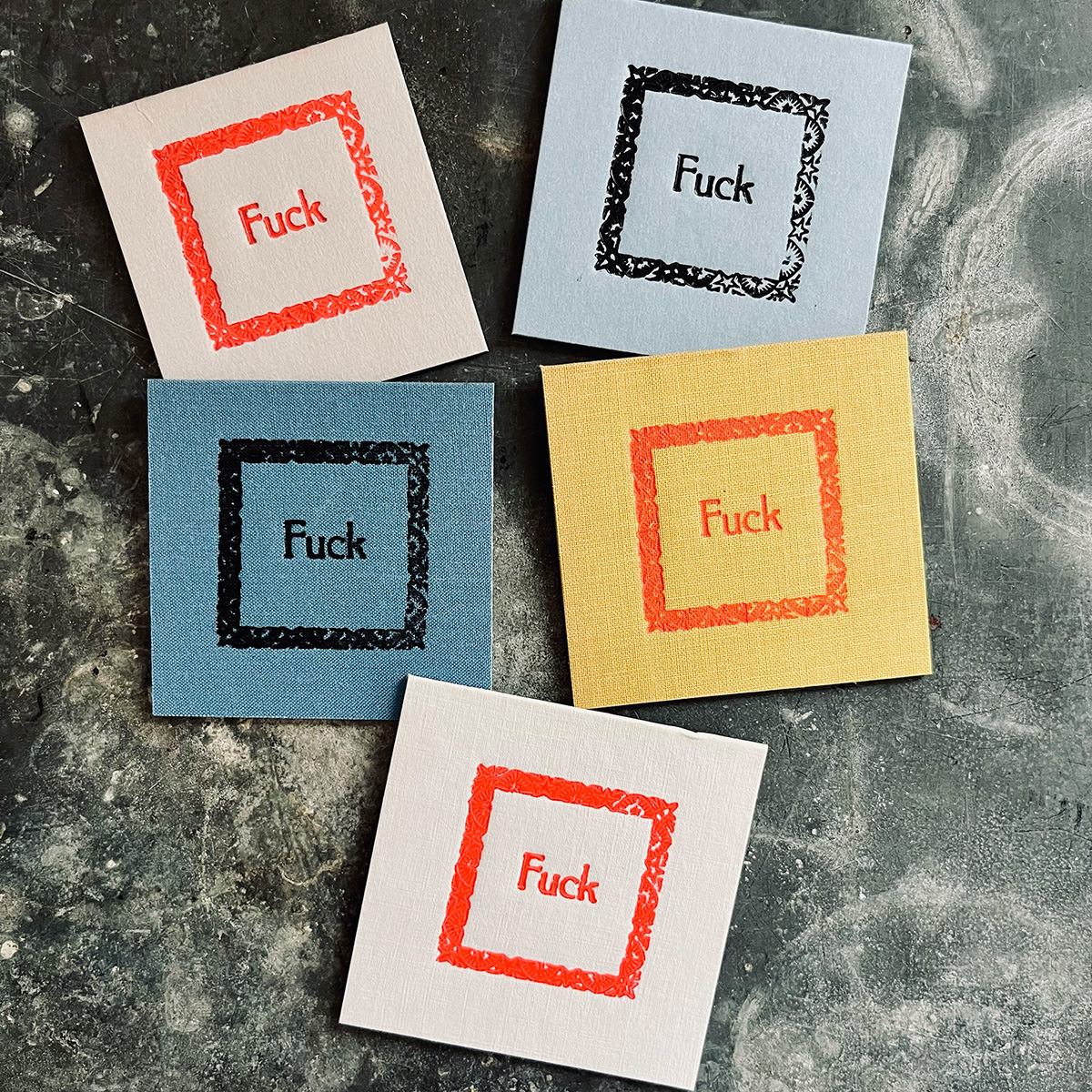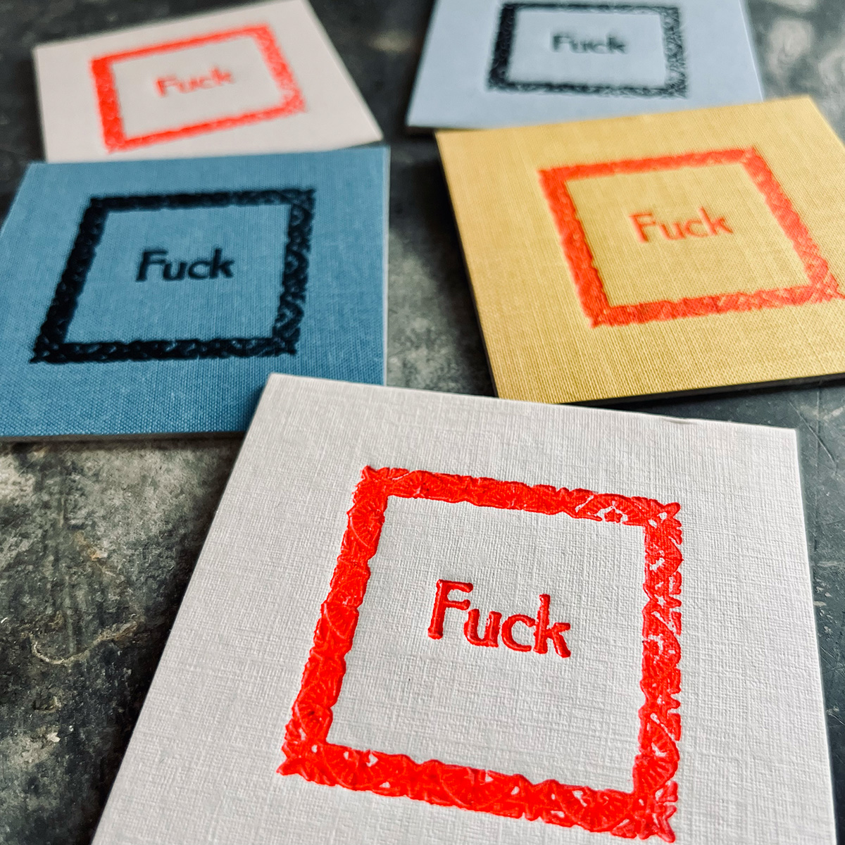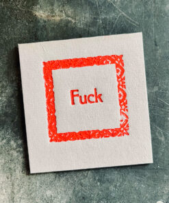 auf einen recycelten Buchdeckel mit Buchdruckfarbe von Hand gedruckt.